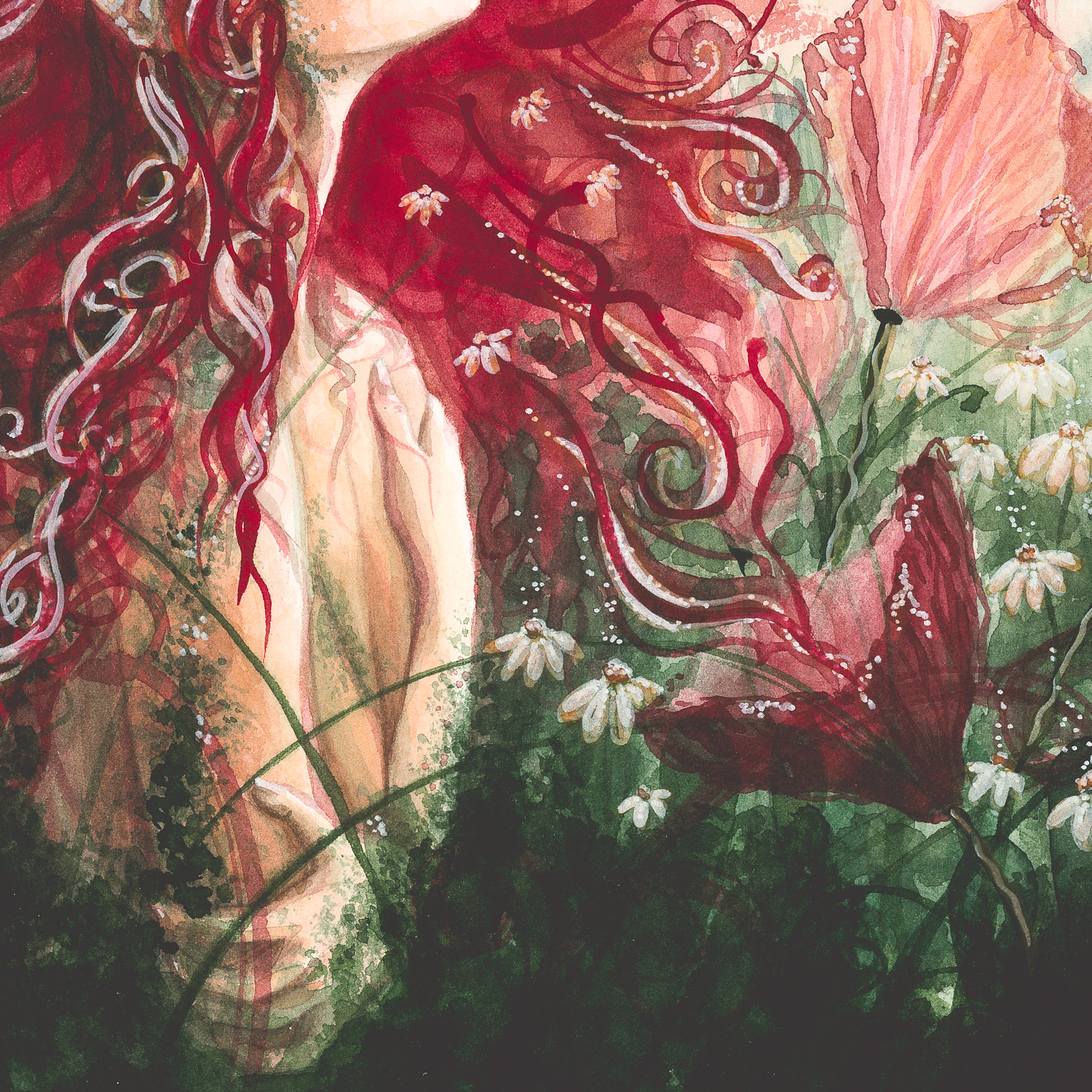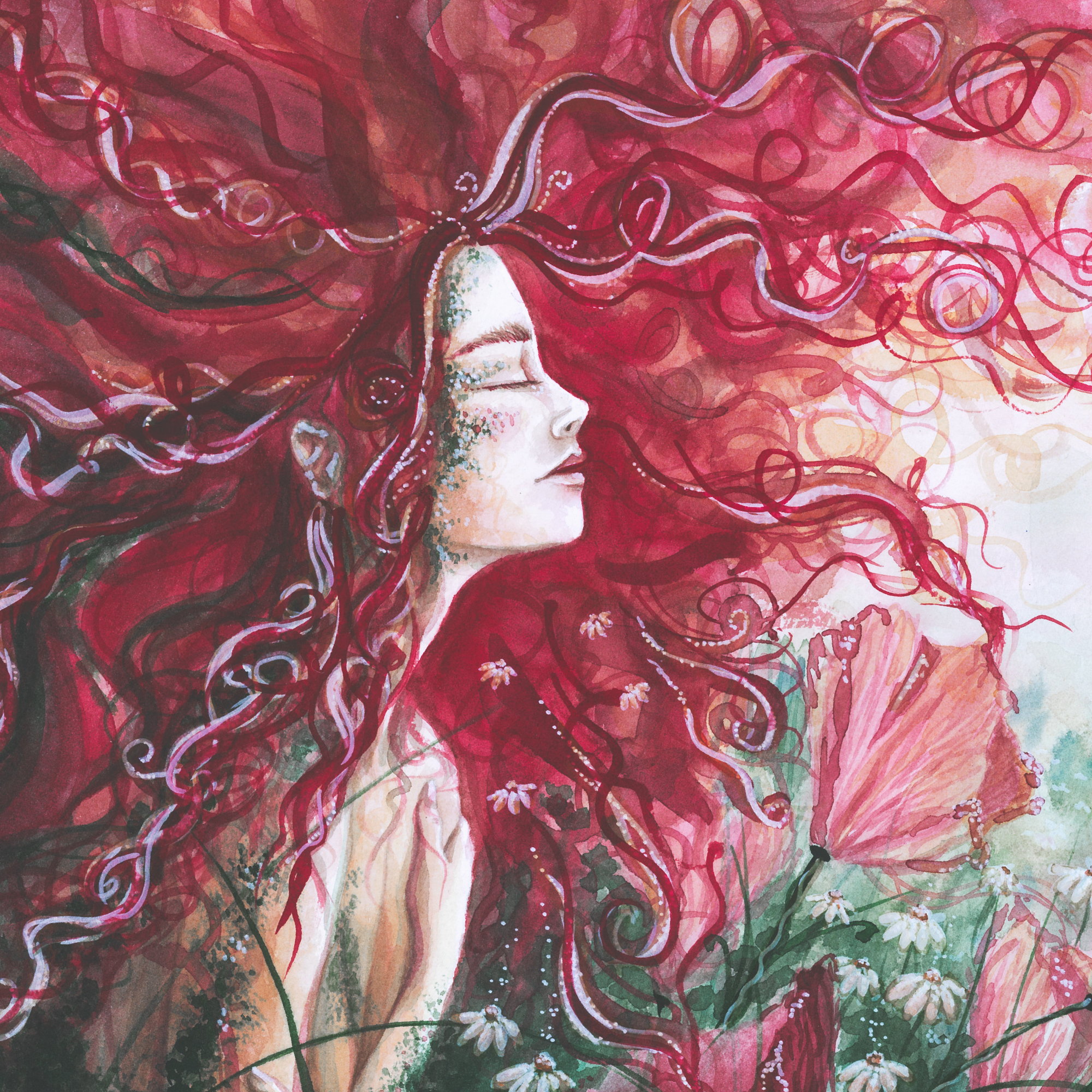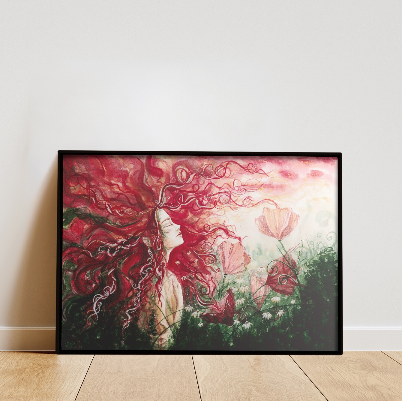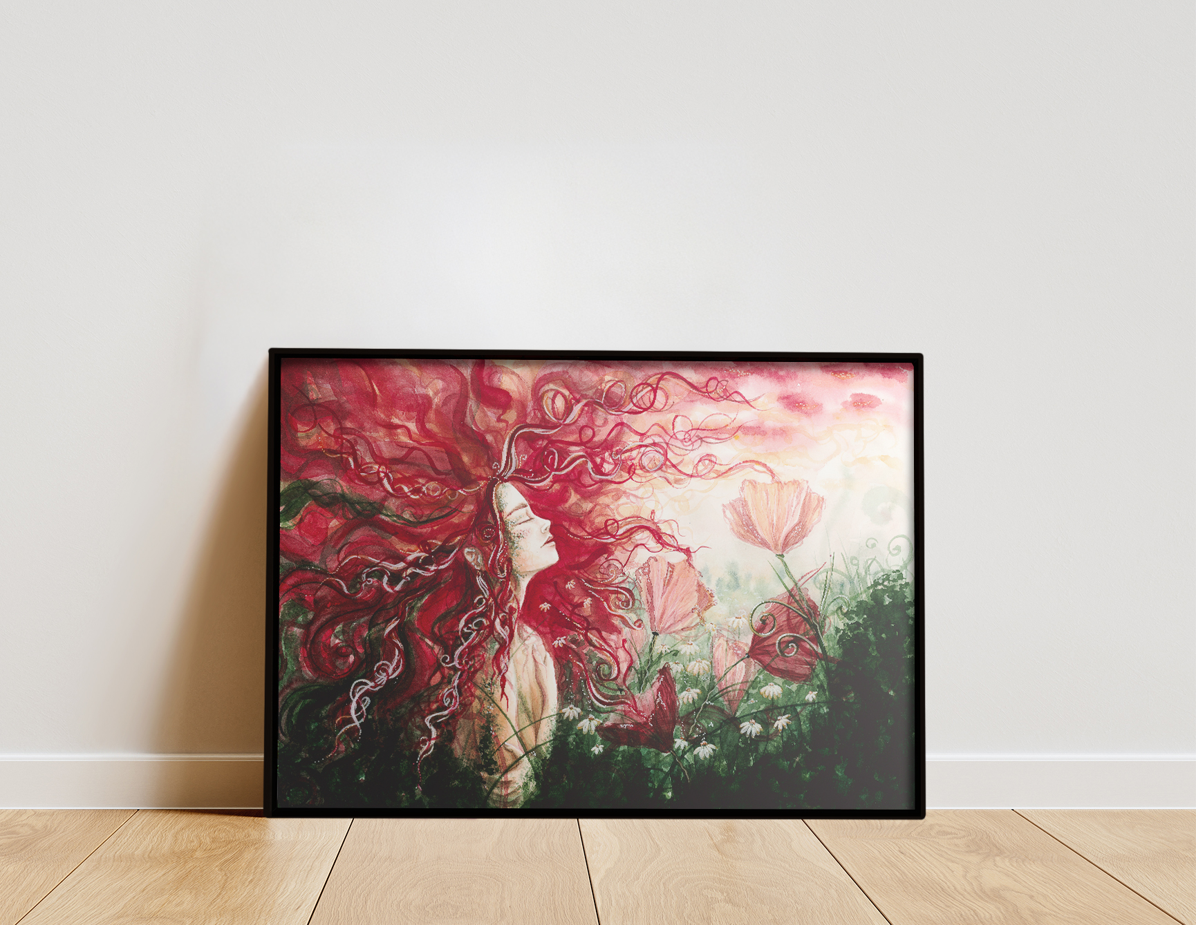Aquarellkunstdruck mit femininem Frauenportrait voller Sanftheit und Erdung. Ökologisch gedruckt mit veganen Farben auf Recyclingpapier, spendet dein Kunstdruck außerdem 10% an unsere Umweltprojekte. In DIN A5, A4, A3 oder A2, gerahmt oder ungerahmt erhältlich.