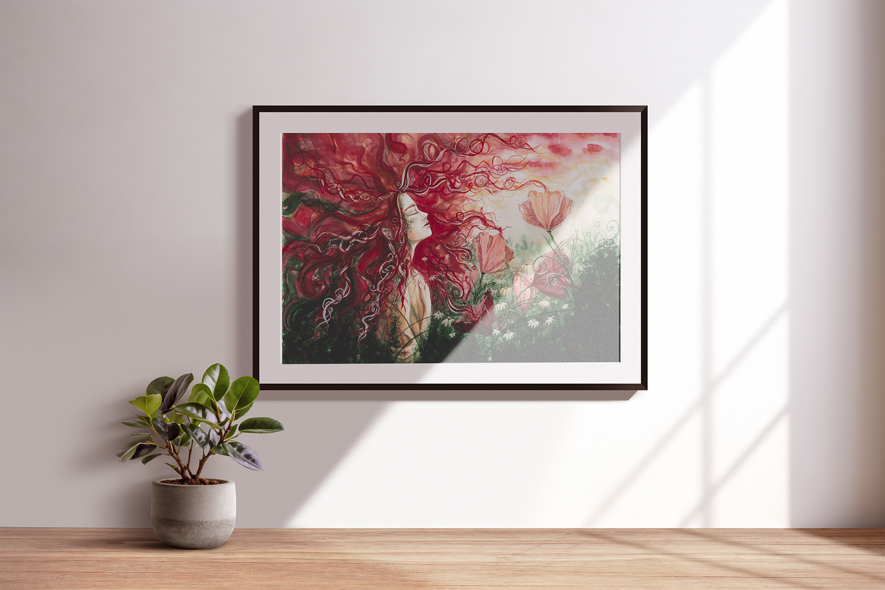 Sie erinnert dich daran, dich selbst zu halten, durchzuatmen und dich vom Strom deiner eigenen Lebenskraft tragen zu lassen. Dieses Kunstwerk lädt dich ein, dein Herz zu öffnen, die Sinnlichkeit deiner Seele zu spüren und dich in deiner Ausdehnung willkommen zu heißen. Es darf dich daran erinnern, dass in dir eine unerschöpfliche Quelle von Schönheit und Lebendigkeit pulsiert – bereit, dich immer wieder in Bewegung, Hingabe und Blüte zu führen.