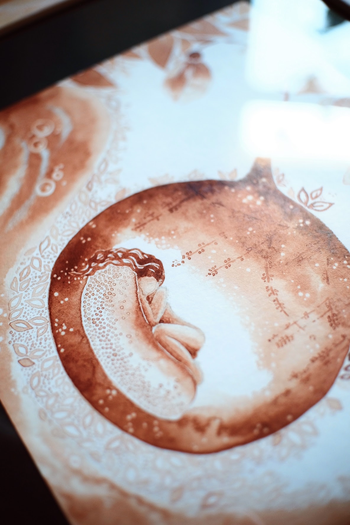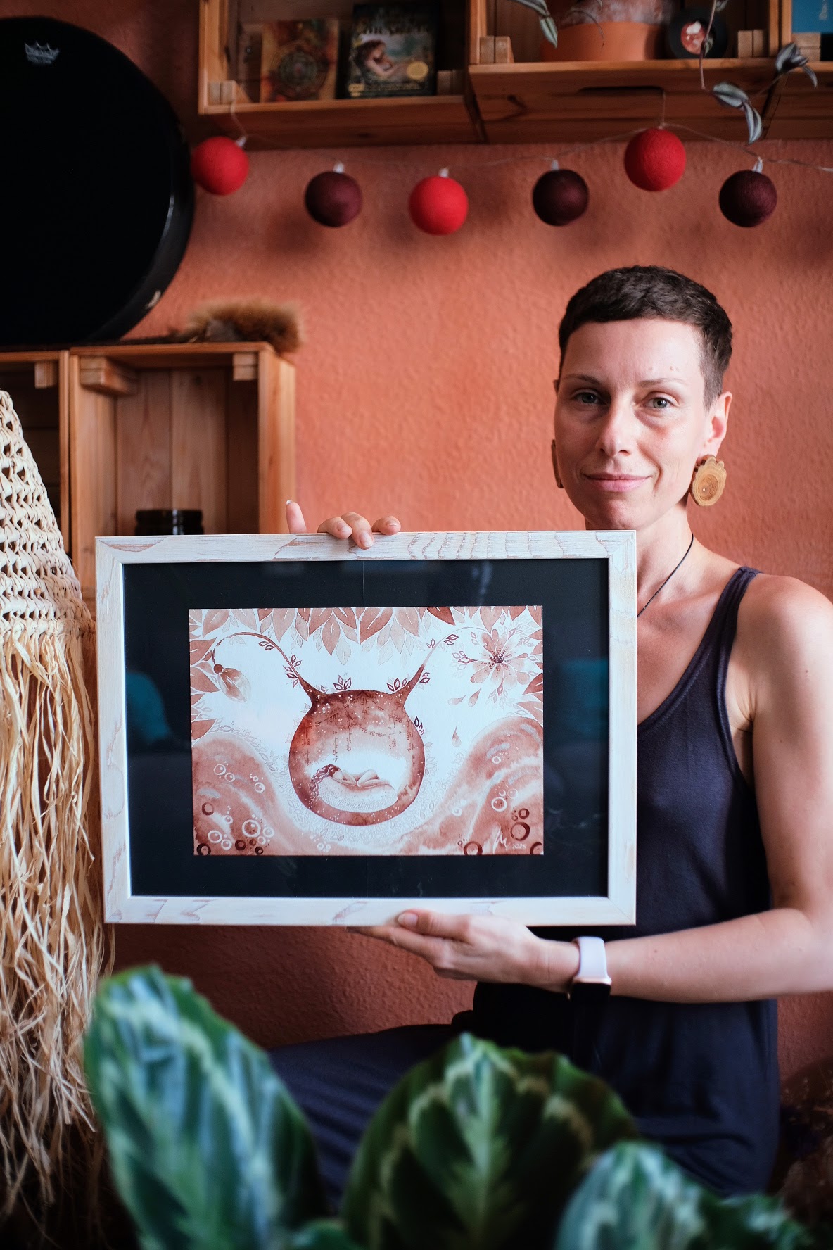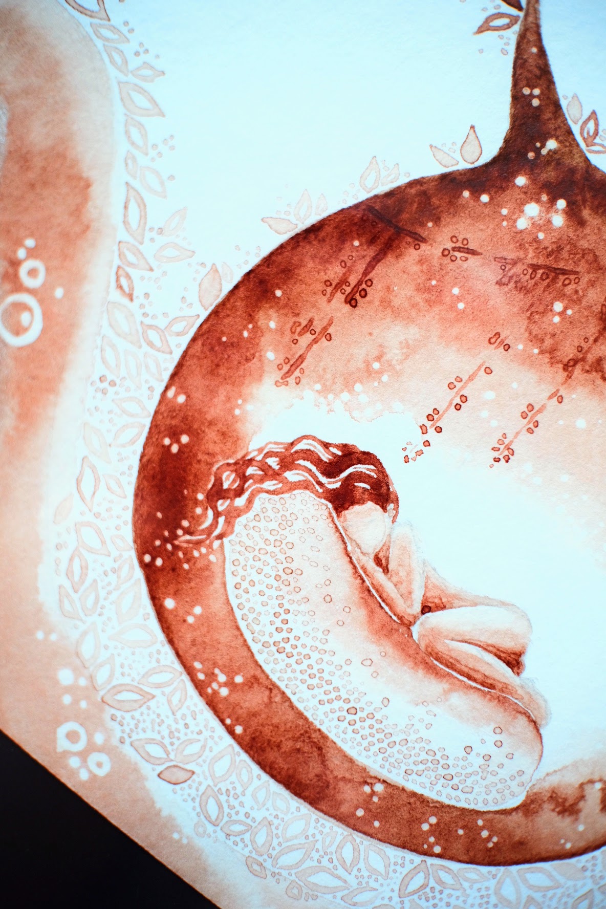 Voller Hingabe fällst du in die Wiege deines eigenen Schoßes. Dieser Period Fine Art Print erinnert dich an die heilende Kraft deiner Gebärmutter – schlafen, träumen, wandeln und wieder auferstehen. Persönlich gedruckt mit echter Tinte auf Recyclingpapier, in DIN A5, A4 oder A3 erhältlich.