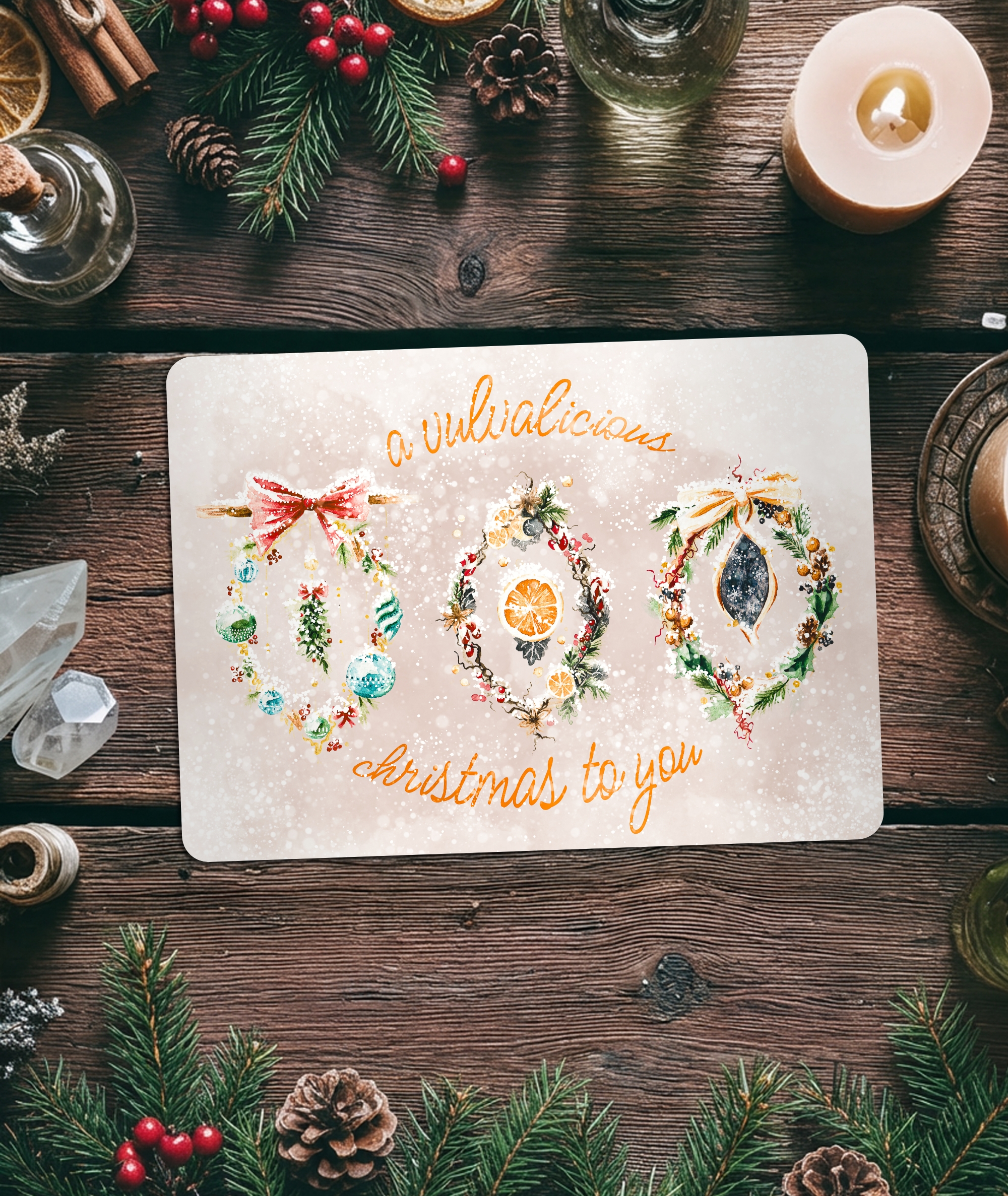 Ein Motiv für alle, die genug von kitschigen Engelchen haben und stattdessen eine Portion selbstbewussten Humor an die Wand oder ins Kuvert bringen wollen. Kurz gesagt: Weihnachtskarte, aber make it vulva.