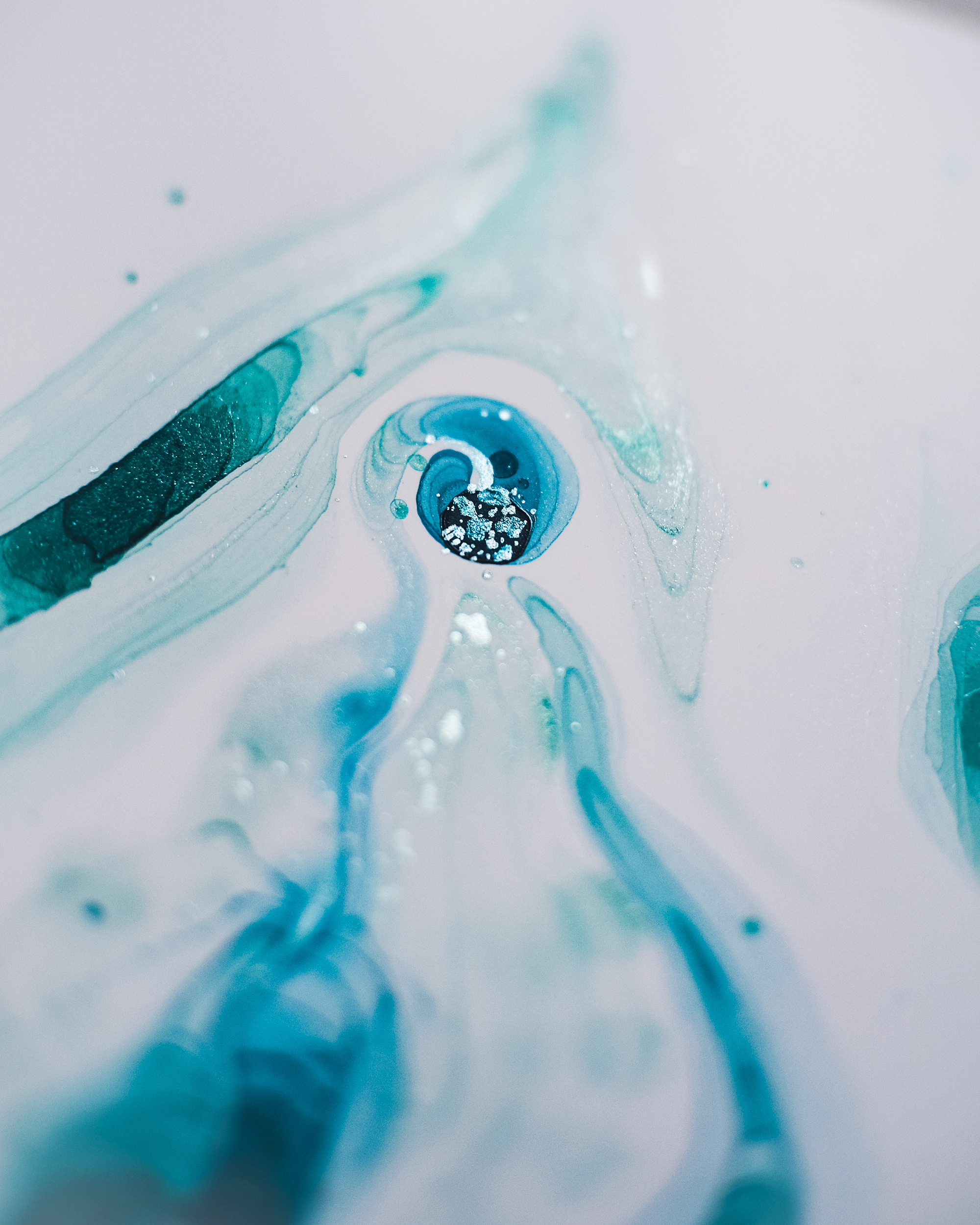 Blau- und Türkistöne verschmelzen zu einer nächtlichen Lagune – still, weich und umhüllend. Zarte silberne Akzente glitzern wie Mondlicht auf der Wasseroberfläche und öffnen einen Raum für Tiefe, Hingabe und liebevolle Selbstverbundenheit.