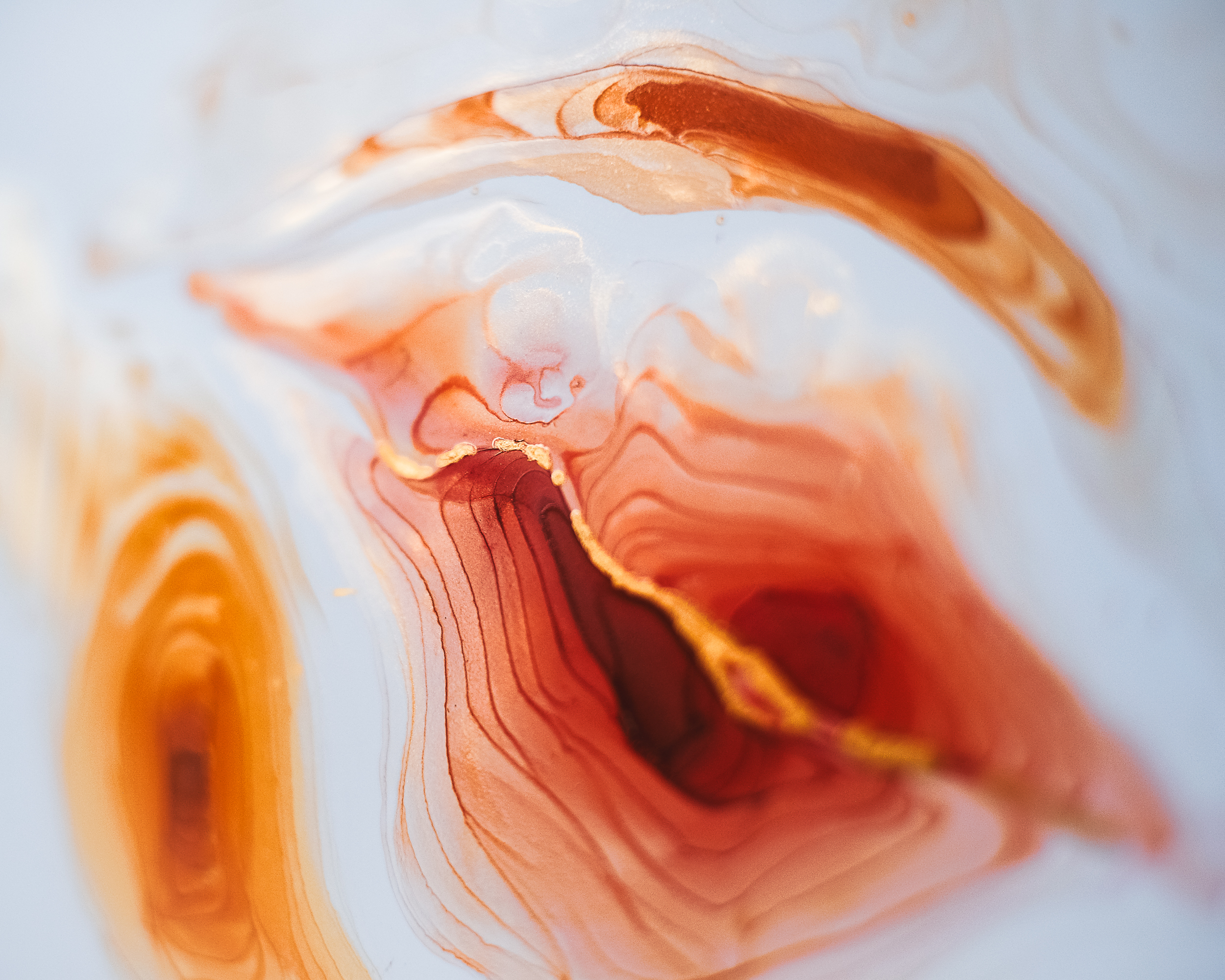 Gelb-, Orange- und Rottöne entfalten sich wie sonnengewärmte Blütenblätter – lebendig, nährend und kraftvoll. Feine goldene Akzente leuchten wie Licht auf Haut und erinnern uns an innere Wärme, Lebensfreude und eine Selbstliebe, die von innen heraus strahlt.